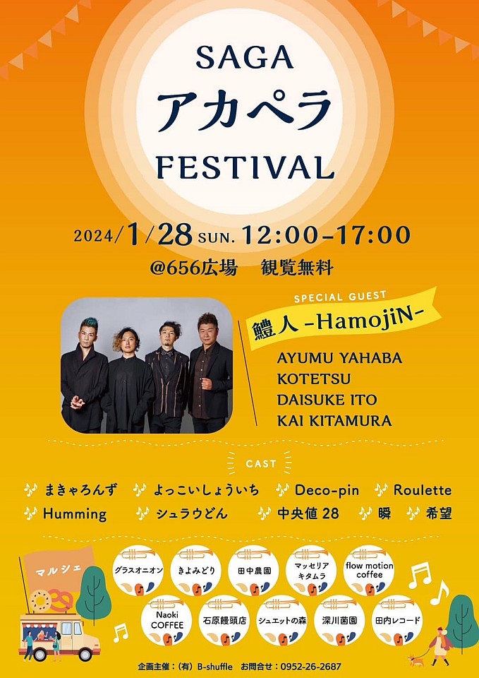 昨日は佐賀の街中、656広場であったア・カペラFESTIVALで、一日中楽しみました。地元ミュージシャン9組と鱧人(-HamojiN-)による、圧巻のアカペラ超人技には正直、驚き!