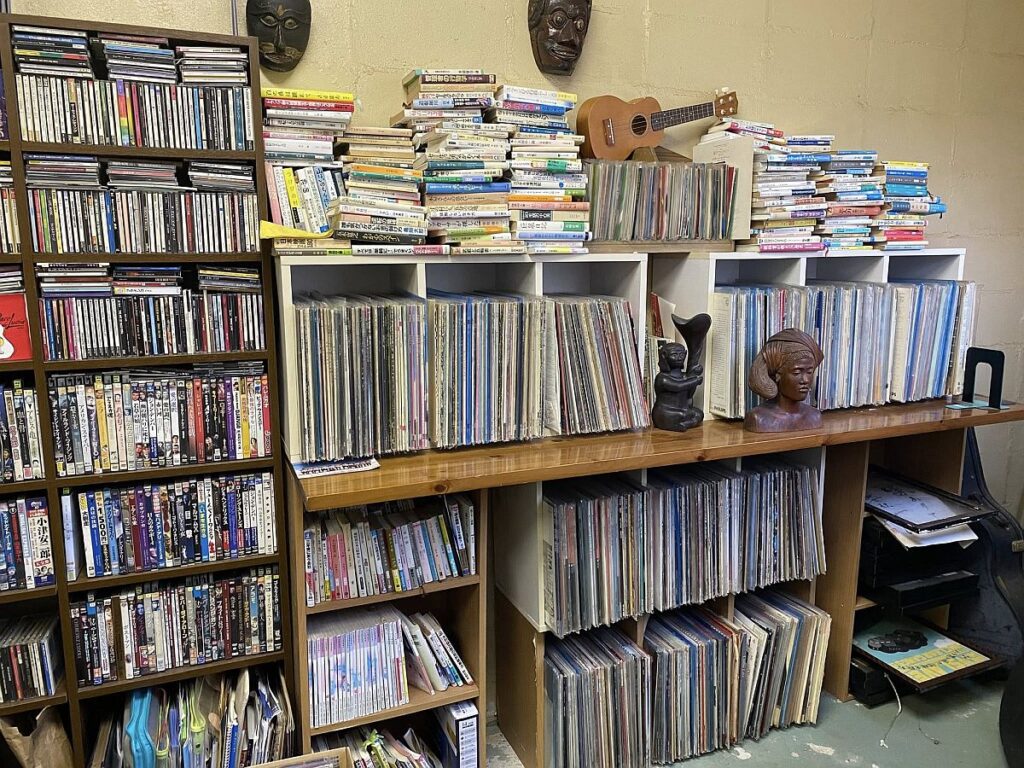 多数のDVD、CD、レコード、本があり、自由に鑑賞出来ます。貸し出し、不用品との交換OK。