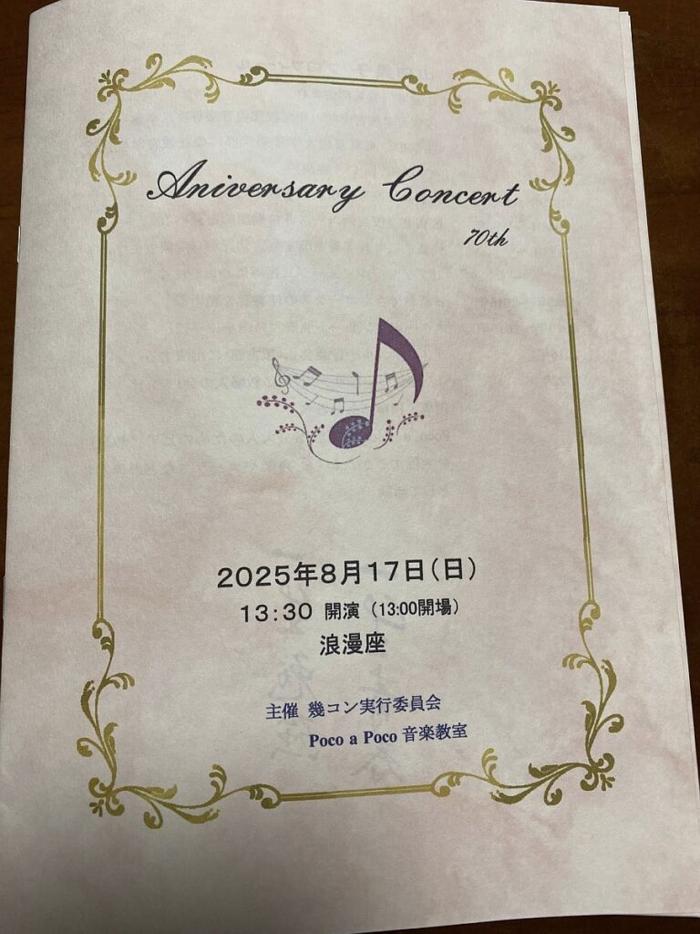 昨日は浪漫座へ足を運びました。「大人のためのピアノ教室」を主宰されているピアノのレスナー、山田幾子先生のAniversary Concert 70th(古希記念コンサート)があったのです。