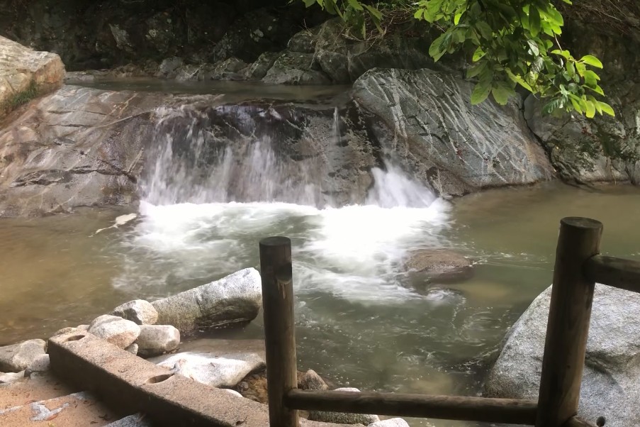 外から聞こえる滝の音や蝉の声、さらに沈む夕陽も見えた。自然に囲まれた会場は、最高です!