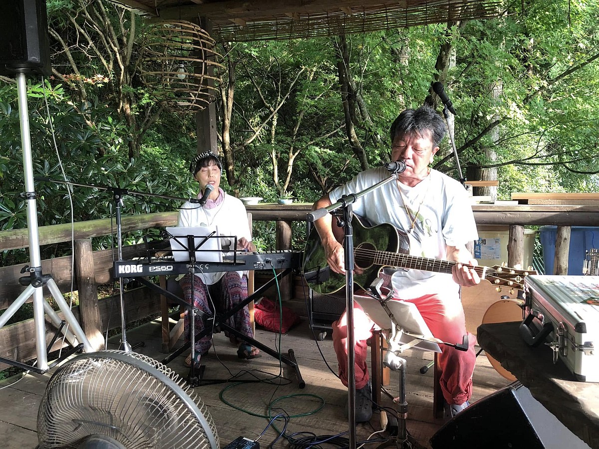 七山でライブがあると聞いてドライブしました。会場は観音の滝スグ近くの観音茶屋 夢家。土曜の午後5時から9時迄の間、地元佐賀や福岡のミュージシャン達が集って歌い演奏。大変盛り上がりました。