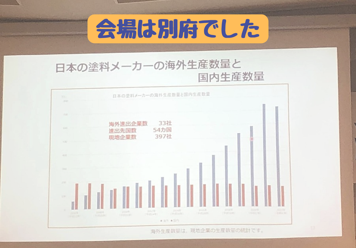 ちょっとした旅気分で土曜日に別府へ。「旅」と書かなかったのは、別府で行われる九州塗料商業会第76回通常総会に出席のため。会場はホテル別府パストラル。