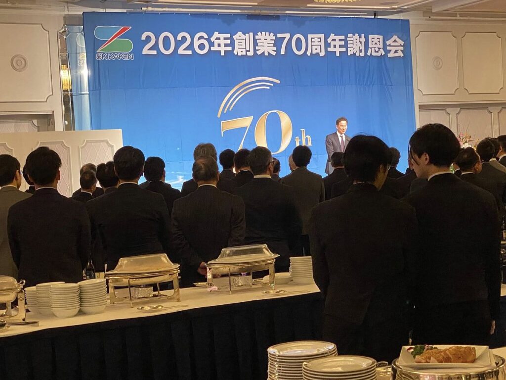 弊社、信栄商会の外壁塗装で使用している、プレミアム無機などの塗料。製造元であるエスケー化研の、創業70周年記念謝恩会が開かれるので、出席してきました。