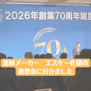 弊社、信栄商会の外壁塗装で使用している、プレミアム無機などの塗料。製造元であるエスケー化研の、創業70周年記念謝恩会が開かれるので、出席してきました。