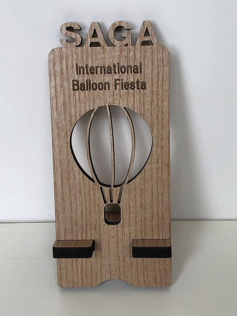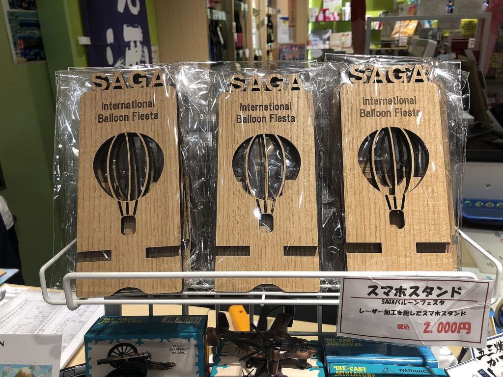 木工部のレーザー加工品として、国スポ全障スポのオリジナルスマホスタンドを制作。その勢いで、佐賀バルーンフェスタのお土産品も制作しました。佐賀空港の売店、佐賀バルーンミュージアム、佐賀駅のお土産店に置いています。インバウンドの方に、爆発的に売れるといいのですが。